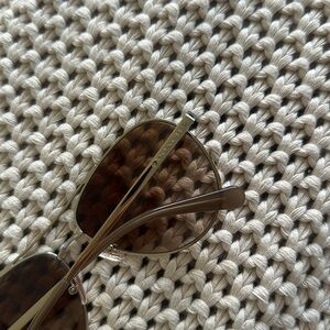 Great sunglasses by Coach. Worn only one time! No scratches. Kept in plastic bag for protection. Coach name on both sides. See photos.