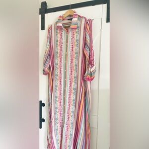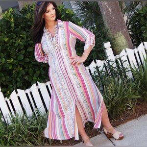 Andree by Unit Boho Embroidered Candy Striped Maxi Dress Duster