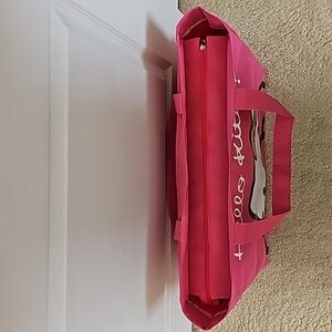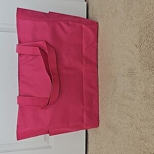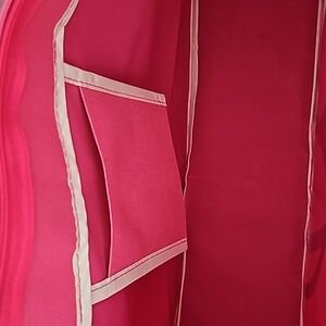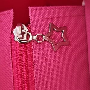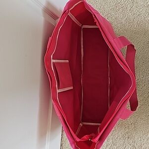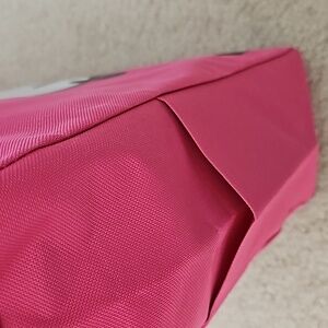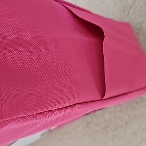 The pictures are showing more of a hot pink. The bag is not as bright in person.