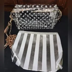 Clear/Silver Polka Dot Makeup Bag Set