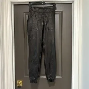 SPANX black faux leather shaping jogger S