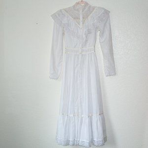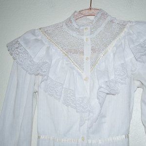 Previous seller said it’s most likely gunnesax with tag cut out. Has a little stain in shoulder ruffle as shown in picture. Buttons are a little frayed