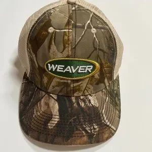 NWOT Weaver camo trucker hat with mesh back and adjustable Velcro back closure.