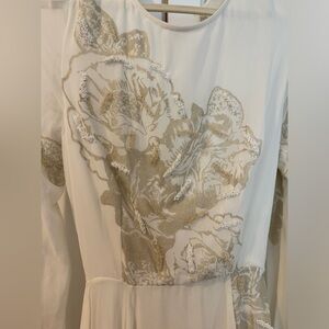 NWOT ASOS EDITION embellished print maxi dress. Size 10. Purchased for engagement photos, but never worn. This dress is ultra flattering with a chiffon beaded , overlay and is completely lined. It has covered button detail on the sleeves and on the back with a sexy open back.