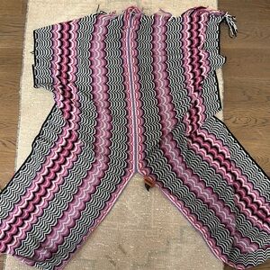 Worn maybe once, excellent condition. I guess I’m just not really a poncho girl! Great statement piece in a winter wardrobe. 50/50 wool/acrylic