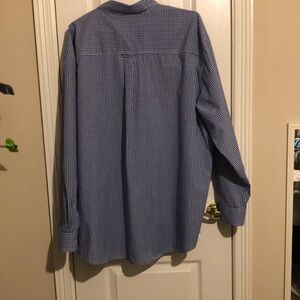 CHAPS Men’s Long Sleeve Shirt. White and Blue, Size 3 X B /3 TF. 60% Cotton, 40 % polyester. 31 inches long from armpit to armpit , Sleeve 26 inches long, 31 inches long from shoulder to hem