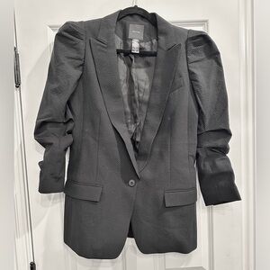 SMYTHE scrunch sleeve long line blazer - black seersucker. Size 10