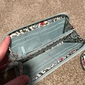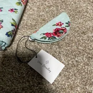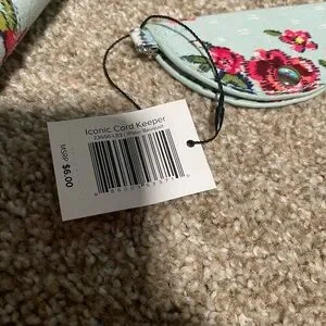 This is a cute wallet from Vera Bradley. It is their Iconic design and is cute for the summer. It is in great condition, only being used a few times. I am including the brand new cord keeper in the same design as well.