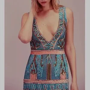 🥳HP Rachel Zoe x Free People Kyra 2/XS Limited Ed Handmade Allover Beaded Gown