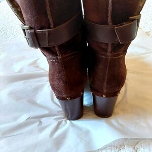 UGG Lynnea Brown Suade Wood Heel Clog Fold over Boots with Buckles Size 7 IN Lovely Condition