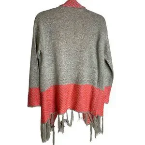 Petrol Womens Grey and Red Marled Open Cardigan with Fringe Size S/M Boho