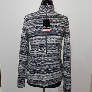 NWT NIKE PRO WARM AZTEC PRINT HALF ZIP PERFORMANCE TOP. BLACK/GRAY. SIZE - L