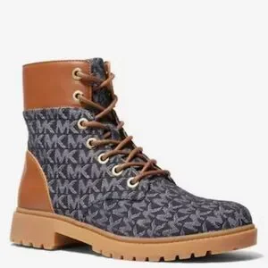 Michael kors denim embroidered logo boots , size 8, worn once or twice