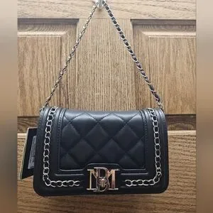 Badgley Mischka Black Quilted Chain Strap Crossbody Handbag NWT