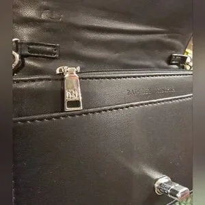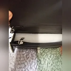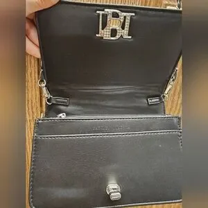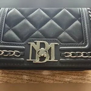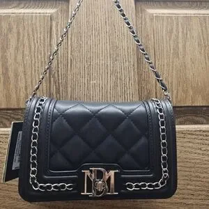 New with tags Badgley Mischka Black quilted purse with silver hardware chain accents in new giftable condition. 7 inches by 4 inches with 20 inch detachable strap. Gorgeous soft vegan leather, turn lock closure, three sections, six credit card slots, zippered center section. Comes with original packaging, ships from smoke-free and pet free home.