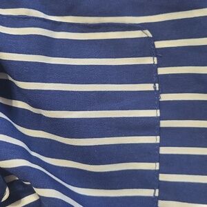 CORAL BAY Blue White Stripe Roll-Tab Pocket Blouse