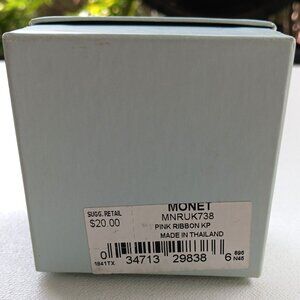 Monet Silvertone Enamel Pink Ribbon Trinket Box New in Box Breast Cancer Awareness