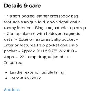 This soft bodied leather crossbody bag features a unique fold-down detail and a roomy interior. - Single adjustable top strap.