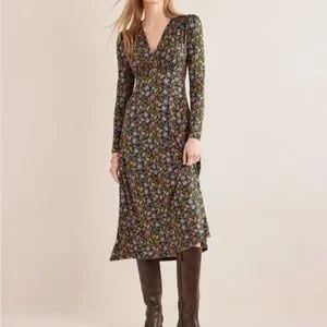 Boden Jersey Midi Tea Dress Chatsworth Green, Lotus Petal - Size 16/18 Regular