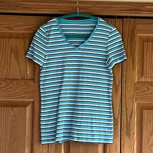 TALBOTS -- Cotton V-Neck Tee - Merida Stripe -- Excellent Condition