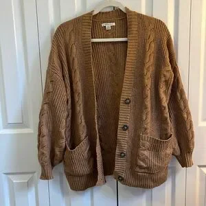 AEO Oversized Cable Knit Button-Up Cardigan in Light Brown