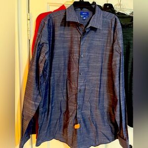Freshly dry cleaned Apt 9 dress shirt. Color is blue with a slight heathered appearance. Size is 17-17 1/2 neck, 36/37 sleeve. Slim fit