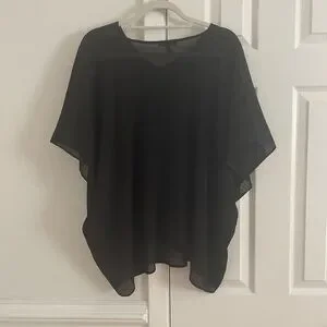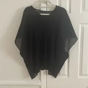 Eileen Fisher Missy Woven Sheer Mesh Plisse V-Neck Top / Poncho in Black Organic