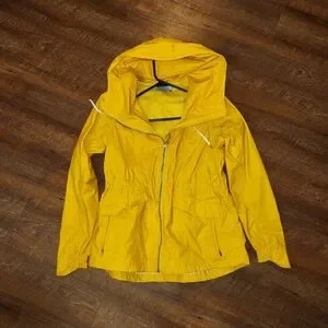 ATHLETA Outbound Anorak Classic Yellow Hooded Rain Jacket Women Sz S Cinch Back