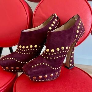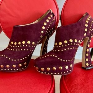 MIU MIU Suede Studded Booties Sz 40 Burgundy color with gold metal studs Bought at Barneys Beverly Hills for $990