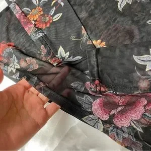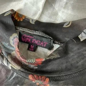 Mesh turtleneck full sleeve top in black / floral