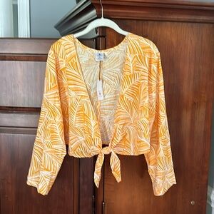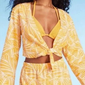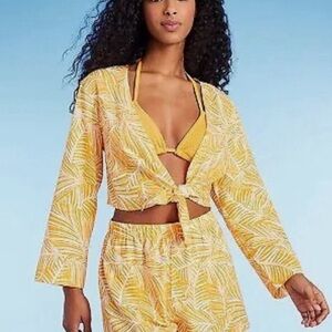 NWT Shade and Shore Tie Front Long Sleeve Cropped Swimsuit Coverup