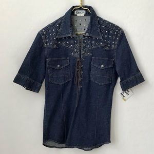 Vintage HBOY dark denim lace up collared shirt with grommets size M