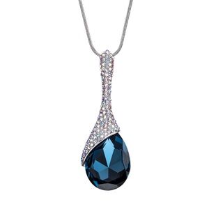 Elevate your style with the Montana Swarovski Crystal Pave Statement Teardrop Necklace. This exquisite necklace features a large teardrop-shaped Montana blue Swarovski crystal, surrounded by a pave setting that enhances its deep, captivating color. Its bold and elegant design makes it a standout accessory for any occasion.