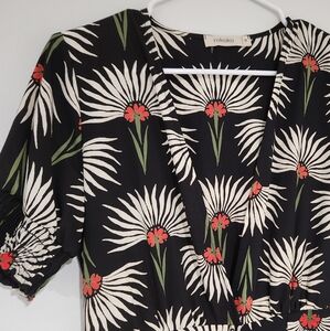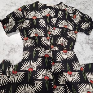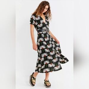Easy and oh-so breezy in this button-down floral midi dress from Urban Outfitters. In a seamed panel construction with a button-down front + plunging v-neckline. Finished with short sleeves that feature ruffled elastic cuffs.