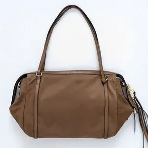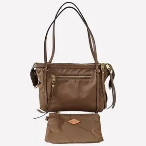 MZ Wallace Brown Nylon & Leather Trimmed Satchel Shoulder Bag With Pouch