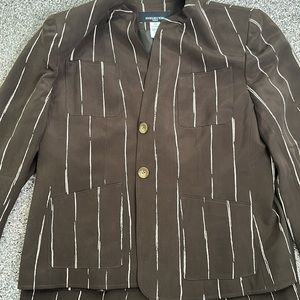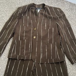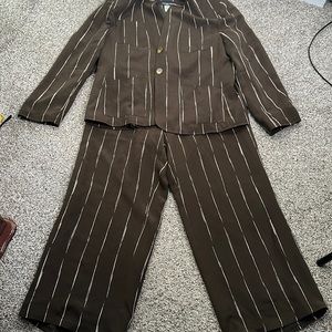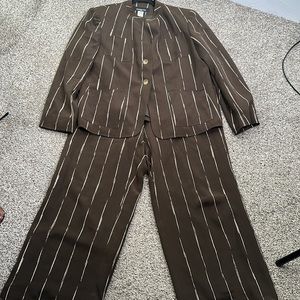 Jones New York slik brown and beige pant suit s size 16w great condition armpit to armpit 23 inches shoulder to hem 26 inches the waist is 18 inches the rise is 16 inches the inseam is 26 inches fully lined