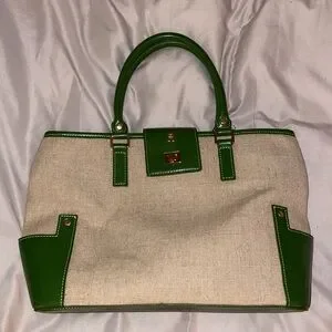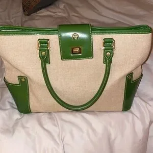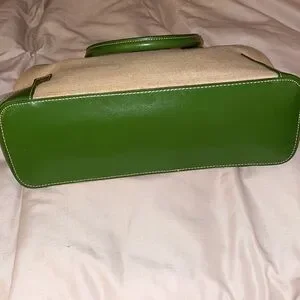 Etienne Aigner canvas bag with green trim. Perfect summer bag. Great condition