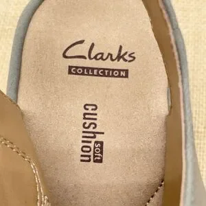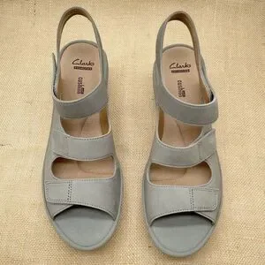 Clarks Reedly Juno Sandal Nubuck Triple Strap Wedge Sage Soft Cushion Size 8.5 W
