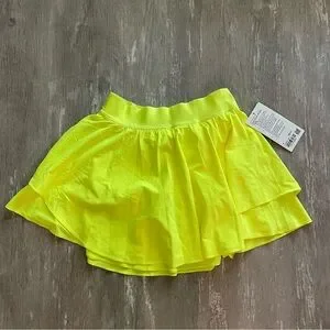 NWT Lululemon Court Rival High-Rise HR Skirt Long in Highlight Yellow. On the court or on the trails, keep them on their toes in this lined lightweight skirt. Swift fabric is lightweight, four-way stretch, sweat-wicking, and quick-drying. Luxtreme fabric liner for comfort and support. Dual entry pocket fits your phone or a tennis ball. 4" inseam on liner.