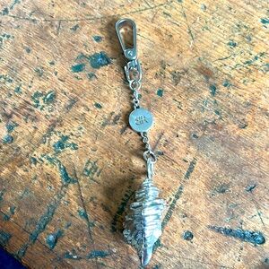EUC VINTAGE Banana Republic Heavy Weight Silver SHELL Bag/Tote Accessory 3” Beautiful Shell With Oversized polished lobster clasp Total length 7.5”