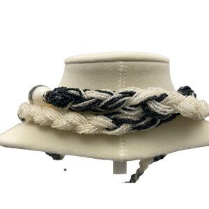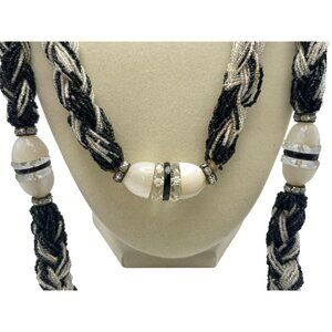 Vintage Art Deco Roaring 20s Black White Beaded Rhinestone Celluloid 50 Necklace