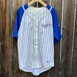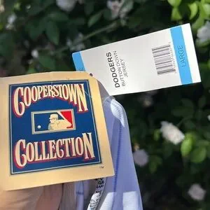 NWT Cooperstown Collection Dodgers Button Down Jersey Size L.