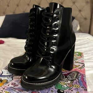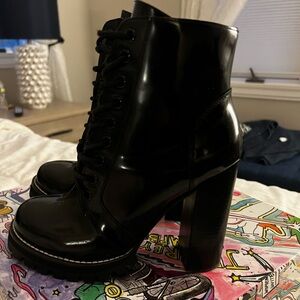 Gently used black Jeffrey Campbell block heeled boots. Like new one minor scuff on the back of the left heel.