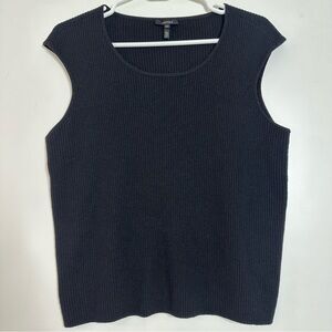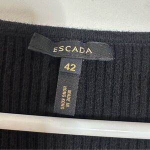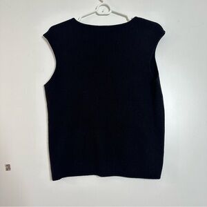 Escada black wool cashmere knit ribbed cap sleeve sweater top