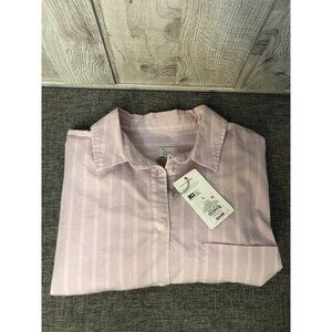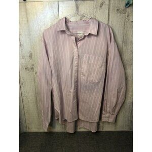 Women's A New Day Mauve Purple White Striped Button Up Shirt Size Large. E11
