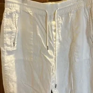 Athleta Retreat Linen High Rise Joggers, White, Size 16