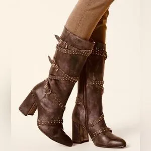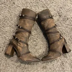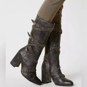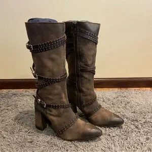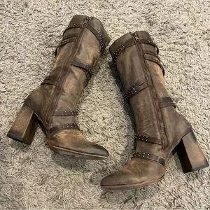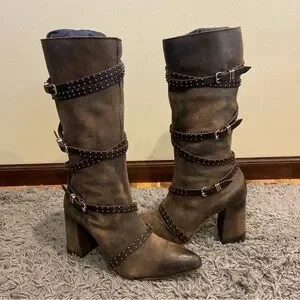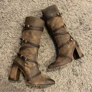 Freebird JAX Strappy Tall Distressed Leather Riding Boots Size 10