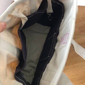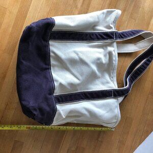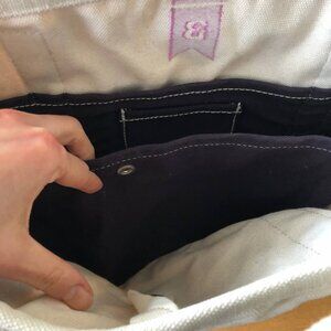 Lands' End Medium Natural 5 Pocket Open Top Long Handle Canvas Tote Bag