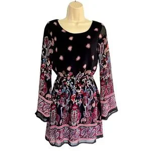RUE21 Paisley Print Bell Sleeves Black Slip On Dress Junior Size Small