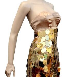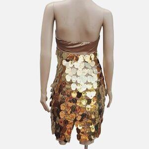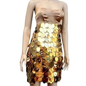 Prom Dress XS Express Gold Sequin Satin Strapless Mod 60s Cocktail